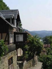 Das Ferienhaus hat Hanglage und befindet sich auf dem Hausberg. Diesen erreichen Sie von der Ortsmitte in 5 Minuten. Die Parkplätze sind auf dem öffentlichen Parkplatz an der Elbe.